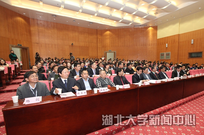 22日上午,资智回汉湖大专场活动在汉举行。专场活动结束后,30余位校友嘉宾回到母校,和母校师生一起共同见证了湖北大学校董聘任和“双一流”建设发展基金启动仪式。出席基金启动仪式的还有湖北大学副校长顾豪爽、蒋涛,副校长钱建国主持仪式。