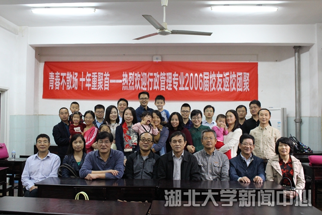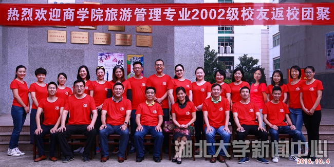 10月4日,商学院2002级旅游管理专业的校友在母校举行了他们毕业之后的首次聚会——毕业十周年聚会。聚会期间,大家集中参观了校史馆,并参加了师生座谈会。 2002级旅游管理专业班长、现任湖北大学商学院团委书记郭田田说:“同窗四年不是谁都能有的缘分,这个十年,我们不离不弃,下个十年,我们不见不散。”
