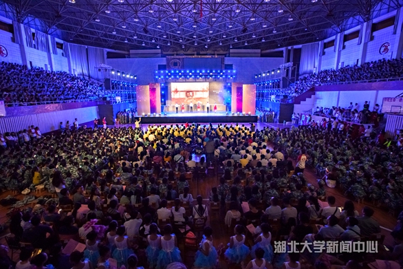 八十五载栉风沐雨,薪火相传桃李芬芳。9月28日晚,“不忘初心共筑梦想”纪念建校85周年文艺晚会在二号体育馆精彩上演。校友、校董、社会人士、企业代表和学校领导、各单位负责人、军训教官及各院师生齐聚一堂,用深情的赞歌、欢快的舞蹈、人文的诗颂、奋进的情怀共庆母校85华诞。当晚,湖北大学官方微博对晚会盛况进行了同步视频图文直播,6.9万余名网友进行了同期收看,千余名校友纷纷留言祝福母校生日快乐。