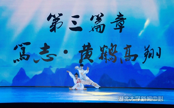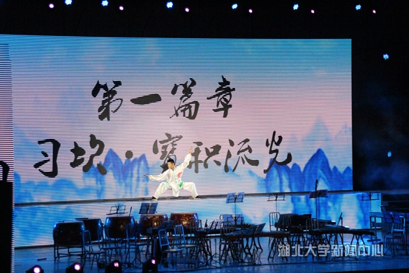 晚会分三个篇章演绎在荏苒时光中绽放光芒的习坎精神,每个篇章以行云流水的太极表演转场。缅怀筚路蓝缕、克难奋进的办学历程,弘扬日思日睿、求真务实的湖大气质,抒发笃志笃行、大展宏图的壮志豪情。