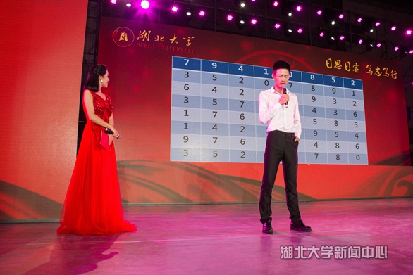 短片《2016届毕业生寄语》展现了优秀毕业生在湖大的成长与收获,抒发了他们心声——“我们的精彩,就是湖大的精彩!”世界记忆大师、我校化学化工学院硕士生李俊成展示了他的超强大脑,在1分钟内速记64个随机填写的数字,倒背如流,震撼全场。男子群舞《脊梁》表演致敬老一辈湖大人,85年峥嵘岁月,他们以执着的坚守和乐观自信的态度支撑起了湖大美好的今天。小品《筑梦青春》,讲述了北漂青年追逐演艺梦想、实现自我价值的故事,搞笑中透露辛酸,逆境中展现顽强。