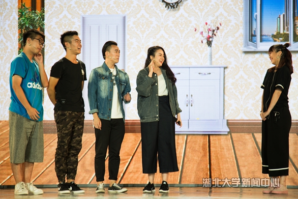 女子群舞节目《天浴》,纯真的少女湖边嬉戏,让观众回味沙湖韵长,陶醉在碧水柔情、美轮美奂的诗意空间里。我校90级校友、武汉市说唱团团长、著名表演艺术家陆鸣携搭档许勇为母校献上了相声作品《音乐家》,诙谐幽默的语言和高超的才艺让现场掌声、笑声接连不断。我校乌克兰籍留学生乔丽娅等人带来歌曲串烧《校园的歌声》,演绎了不同年代不同风格的流行歌曲,展现了湖大学子朝气蓬勃的精神面貌和才华横溢的艺术风采。