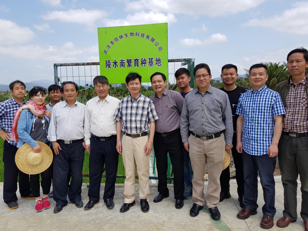 3月10日,赵凌云校长一行赶赴位于海南陵水县的南繁水稻育种基地考察调研,并看望慰问基地科研人员,了解水稻育种研究情况。赵凌云校长在武汉多倍体生物科技有限公司董事长陈柏林和蔡得田教授的陪同下先后前往多倍体水稻育种基地和早稻育种基地,深入水稻选种圃和繁育田,现场查看水稻长势,并与蔡得田教授团队、居超明教授团队科研工作者进行深入交谈,详细了解了育种科技创新进展、科研人员生产生活和基地基础设施建设等相关情况。