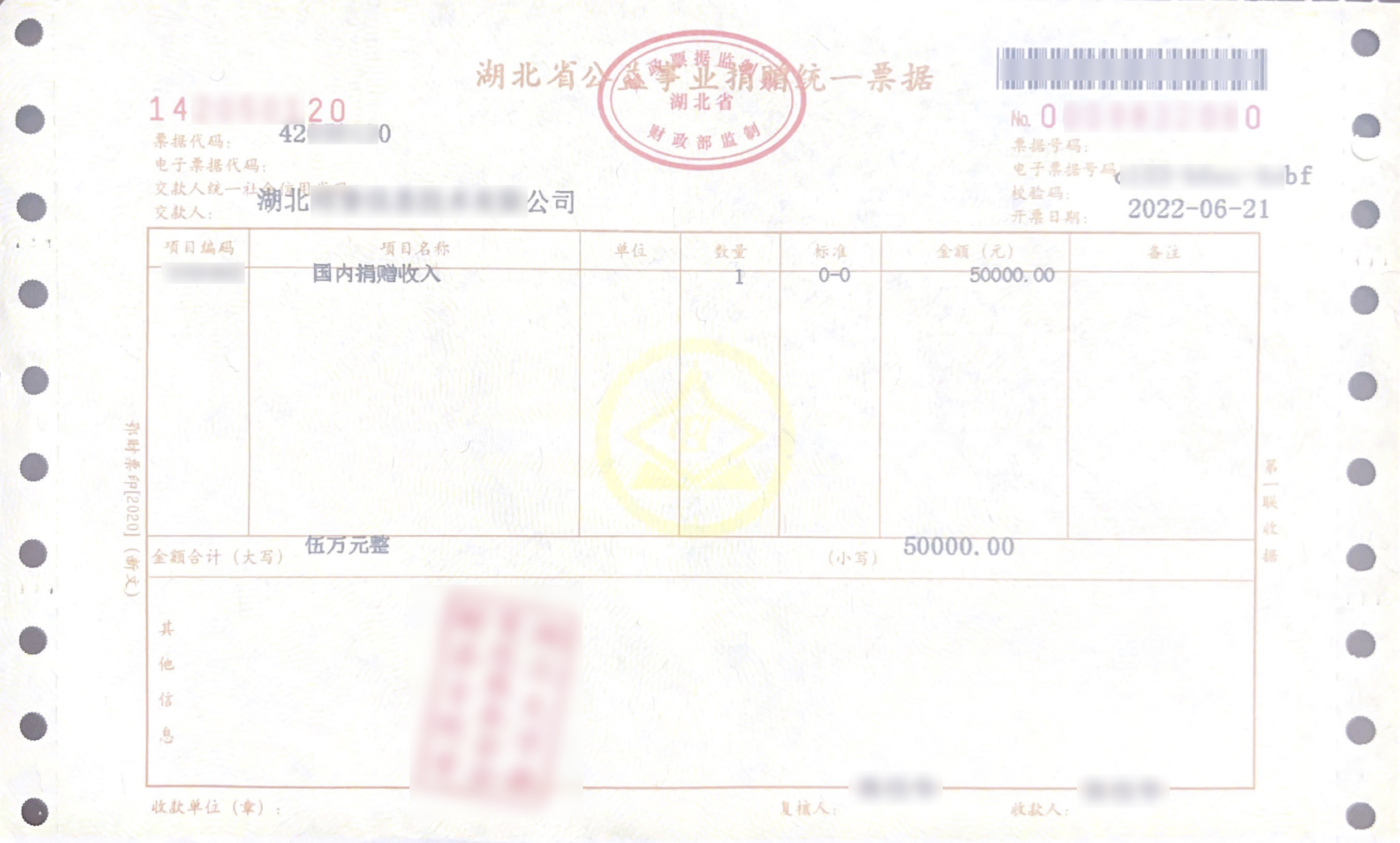 三、湖北大学教育发展基金会是具备公益性捐赠税前扣除资格的慈善组织。对湖北大学的捐赠统一由基金会负责接收,并根据捐赠方意愿为捐赠单位或个人开具纸质版湖北省公益事业捐赠统一票据(票样见下图),该票据可作为公益性捐赠税前扣除资格的依据。