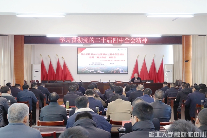 11月26日,省委宣讲团成员、校党委书记谢红星赴英山县石头咀镇,为镇村党员干部宣讲党的二十届四中全会精神。英山县委副书记唐勃主持宣讲会。谢红星以《在扎实推进乡村全面振兴过程中彰显担当续写“两大奇迹”新篇章》为题,结合当地实际,从“读懂制度之‘优’:五年规划是党治国理政重要经验”“把握战略之‘精’:党的二十届四中全会的主要内容”“领会重中之‘重’:乡村全面振兴应有之责与何以担当”等方面,对全会精神作了系统阐述和深入解读。他指出,农业农村现代化关系中国式现代化全局和成色,解决好“三农”问题是全党工作